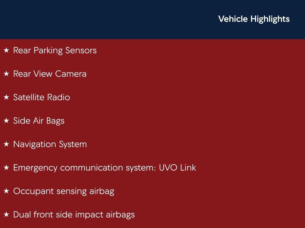 - Emergency SOS Capable UVO Link emergency SOS system via mobile device