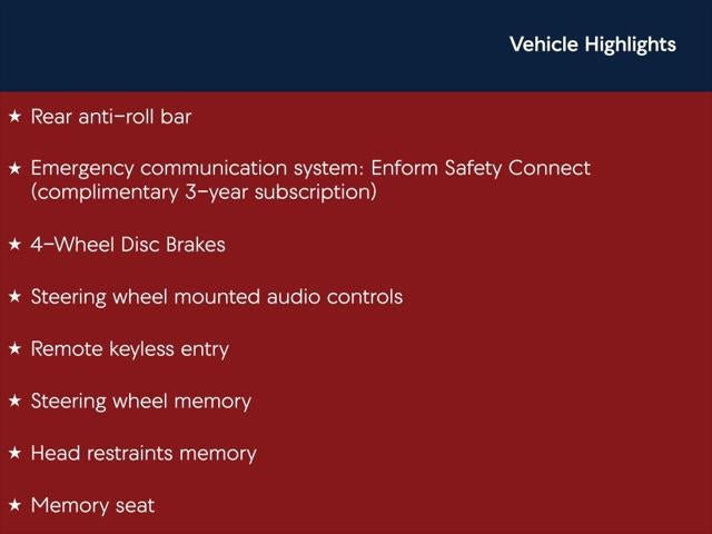 - Emergency SOS Capable Enform Safety Connect (complimentary 3-year subscription) vehicle integrated emergency SOS system