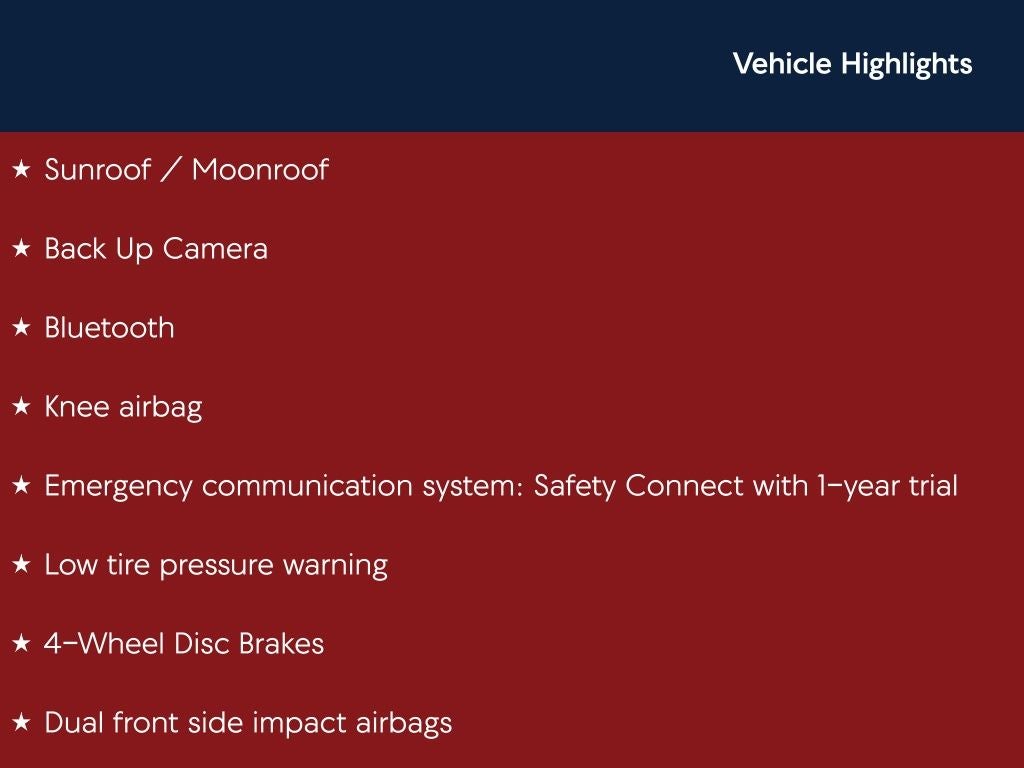 - Emergency SOS Capable Safety Connect with 1-year trial vehicle integrated emergency SOS system
