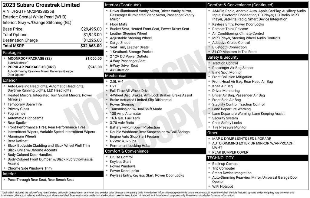 - Vehicle Name: Subaru Crosstrek