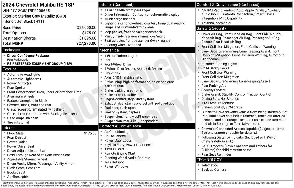 - Vehicle Name: Chevrolet Malibu