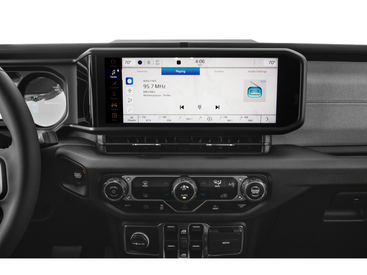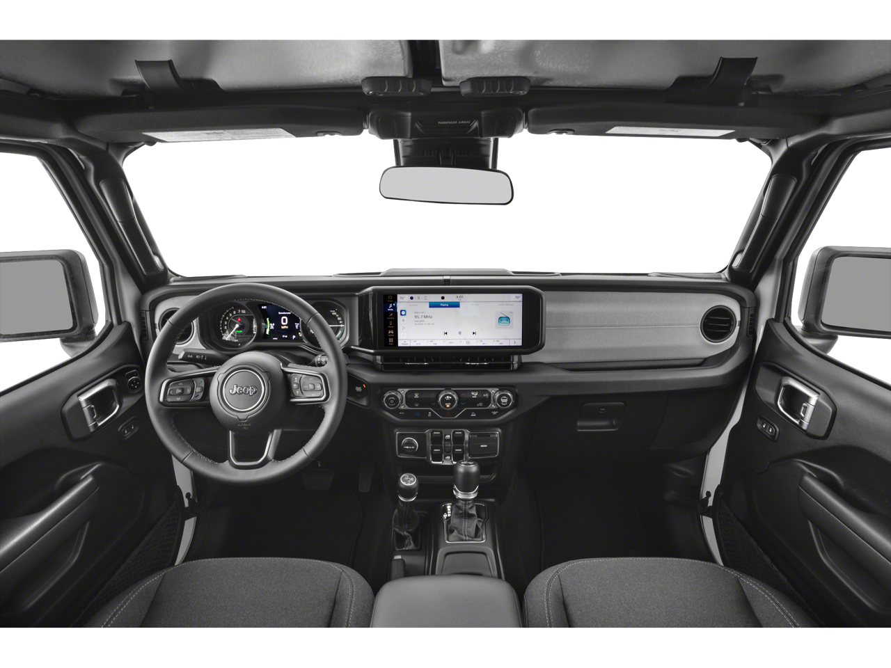 The Wrangler Willys 4xe also showcases a stunning Granite Crystal Metallic Clearcoat exterior, complemented by a sleek Black 3-Piece Hard Top that exudes a bold, rugged aesthetic. Step inside and discover the refined cabin, where premium materials and thoughtful design elements create an environment that is both functional and inviting.
