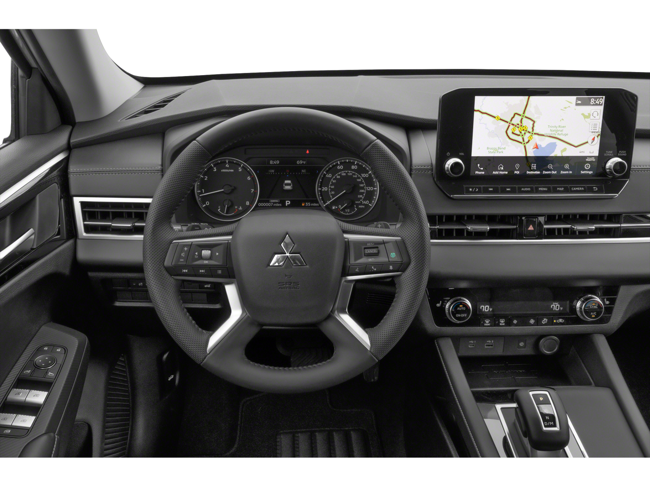 - Radio: AM/FM 9.0" Navigation w/Smartphone Link -inc: 6 speakers, Apple CarPlay, Google Android Auto, SXM all-access and SXM traffic and travel link w/90-day subscription, Mitsubishi Connect, HD Radio, Bluetooth® wireless technology, steering wheel controls for phone, audio and voice recognition and USB ports