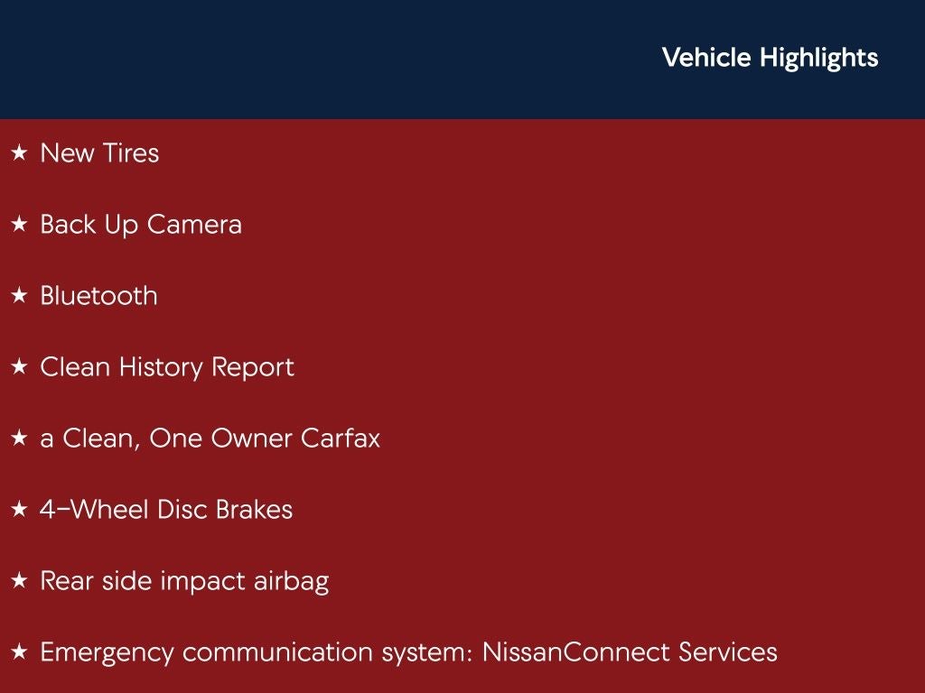- Emergency SOS Capable NissanConnect Services vehicle integrated emergency SOS system
