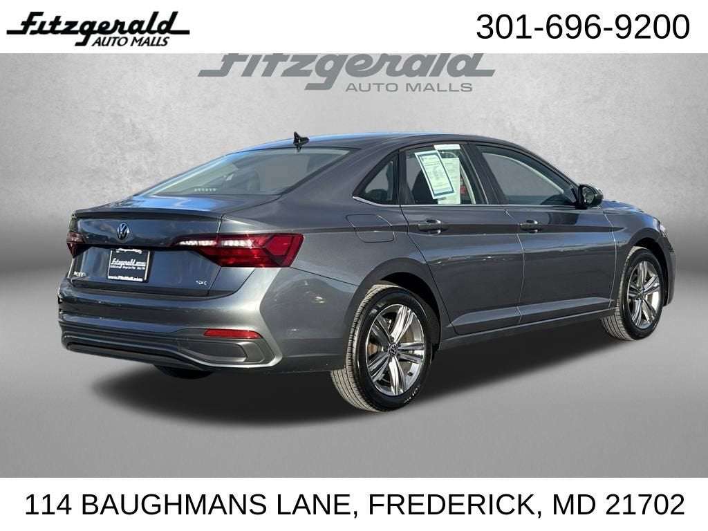2024 Gray Volkswagen Jetta 8-Speed Automatic with Tiptronic black Artificial Leather. 1.5L I-4 DI DOHC Turbocharged 1.5T SE You will love our NO HAGGLE, NO HASSLE PRICING here at Fitzgerald Auto Mall. Ask us about our BUYER PROTECTION PLAN, LOANER CAR PROGRAMS, AND FREE Vehicle History Report. Can not find what you want?? NO PROBLEM! We have over 1,000 Pre-Owned vehicles available at WWW.FITZMALL.COM. You can also visit us in person at 114 Baughmans Lane Frederick MD, 21702 or Call Us @240-629-7301.