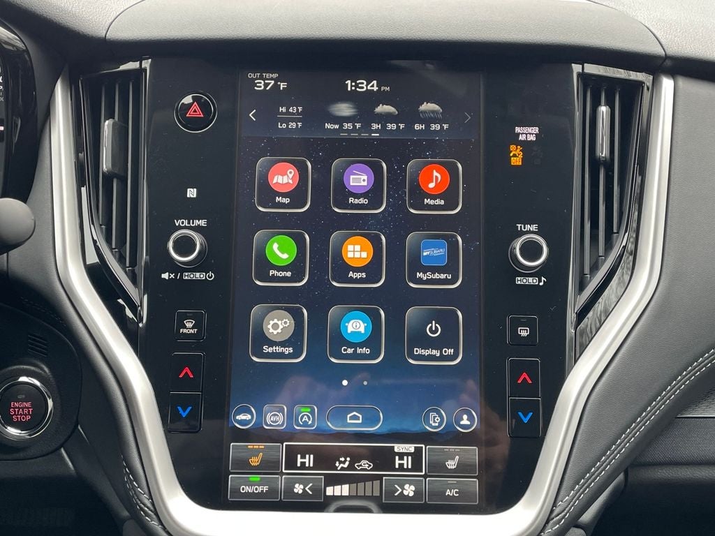- Radio: Subaru 11.6" Multimedia Plus System -inc: AM/FM stereo, HD Radio, valet mode, multi-touch gesture high resolution display screen, voice activated controls, Bluetooth® audio streaming and hands-free phone connectivity w/SMS text messaging (refer to subaru.com for cell phone compatibility), Near Field Communication (NFC), iPod control capability, SiriusXM w/360L (4 months free trial/subscription required after), SiriusXM Travel Link (3 years free trial/subscription required after), smartphone integration w/full screen view and wireless connection for Android Auto and Apple CarPlay, USB and Over The Air (OTA) audio system update, audio/Bluetooth® steering wheel control switches, 6 speakers, 3.5mm illuminated front auxiliary input jack, illuminated front and rear USB-A and USB-C input/charge ports and roof mounted satellite and connected services