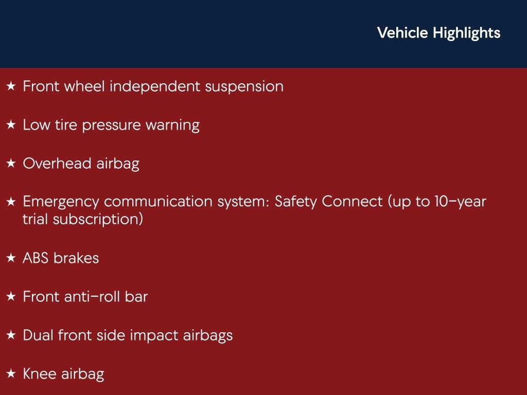 - Emergency SOS Capable Safety Connect (up to 10-year trial subscription) vehicle integrated emergency SOS system