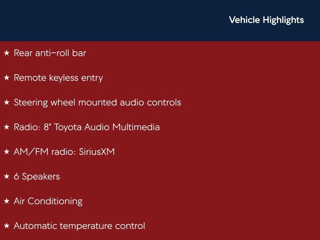 - Radio: 8" Toyota Audio Multimedia